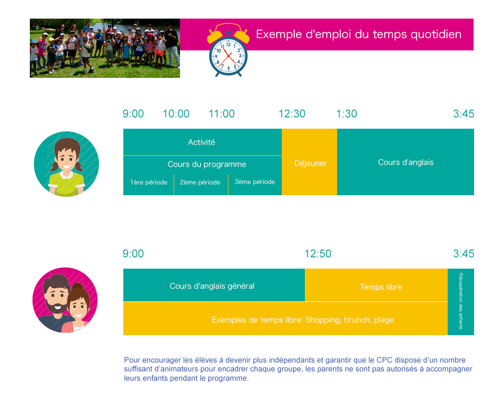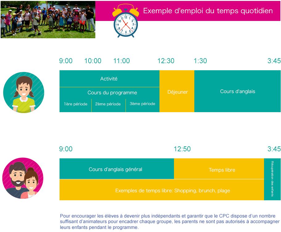 “Je suis ravi d'avoir eu le courage d'inscrire mon enfant au programme Keiki de CPC, car il a passé un excellent moment chaque jour. Comparé à d'autres programmes pour enfants, celui de CPC inclut non seulement des cours d'anglais, mais aussi des activités, le déjeuner, des collations et un T-shirt. C’est la raison pour laquelle j’ai choisi CPC. Les enseignants étaient très amicaux et échangeaient non seulement avec les enfants, mais aussi avec les parents. Tout le personnel était très gentil. Merci beaucoup pour ces merveilleux souvenirs d’été !”