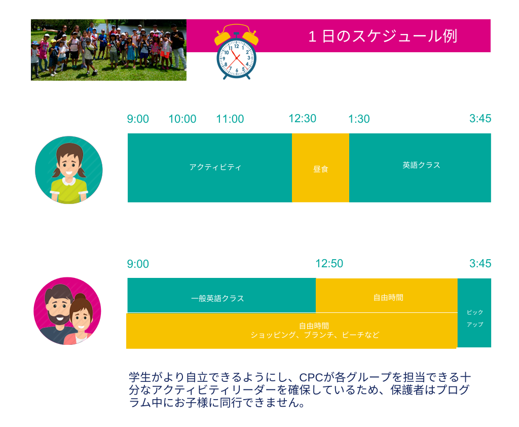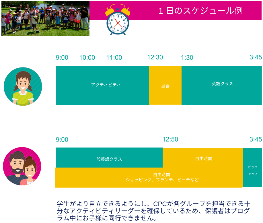 「CPCは、私たちが行けない場所に子供たちを連れて行ってくれました。CPCには英語を話す先生だけでなく、日本語を話す先生やスタッフがいるのがとても良かったです。」